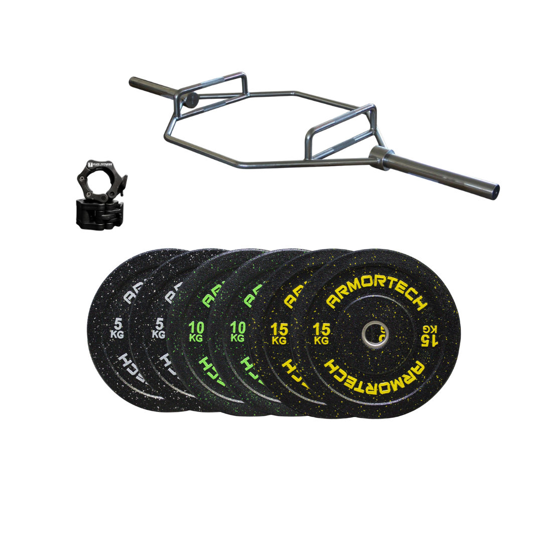 85kg Crumb Bumper & Hex Trap Barbell Package