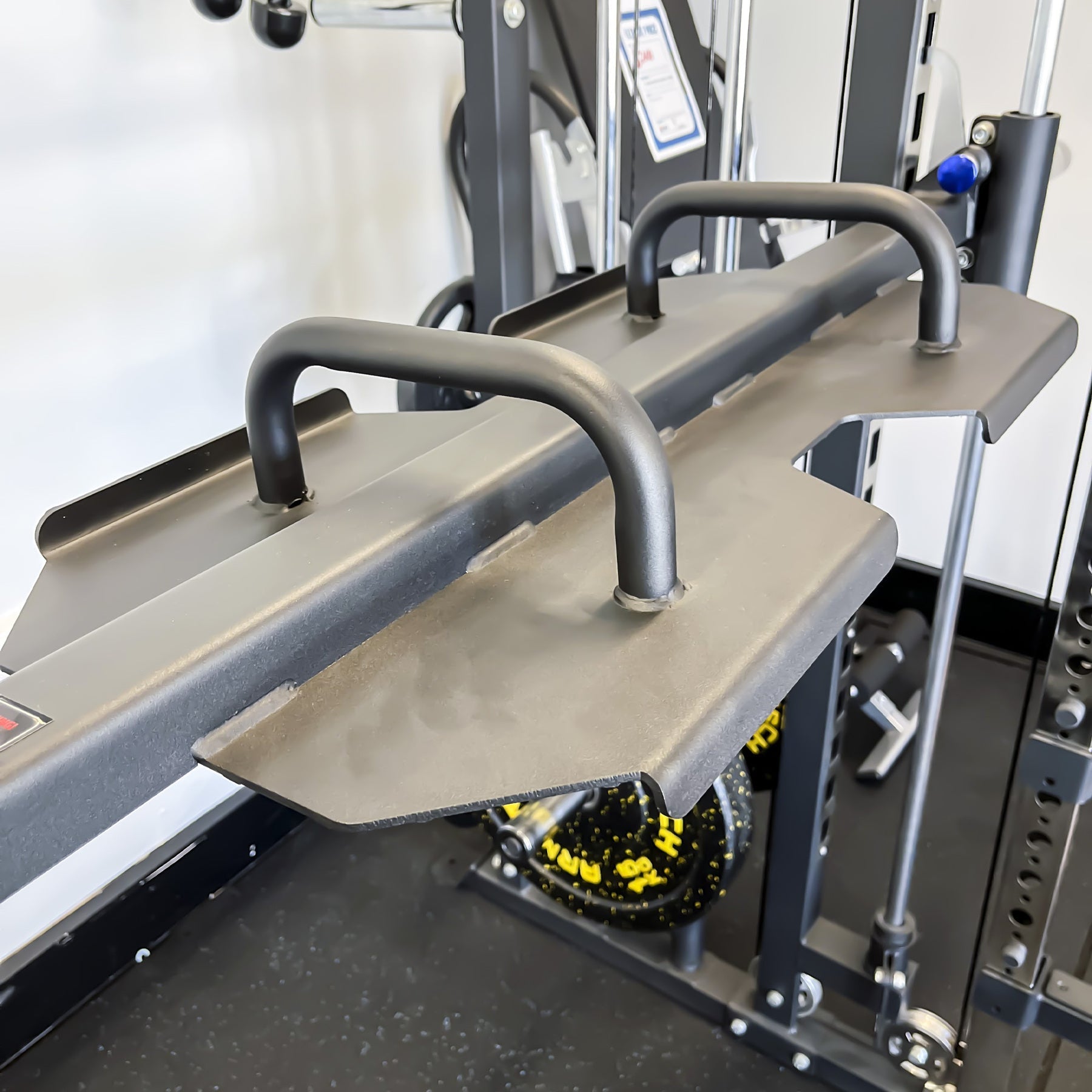 Easy to put on, with two pop-pins that lock onto the F10 Smith Machine bar.