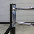 A chin-up bar in a gym is also a highly useful fixture, given that it can also be used as an anchor for rings, bands or a TRX suspension trainer. The Armortech Multi grip pull up bar is bolted flush to the support brackets so there is no play or movement, just a solid fixture that will take any weight up to 180kg.