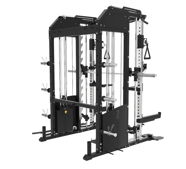 SMITH MACHINE COMPONENT The Smith Machine, a versatile training tool, provides a safe and controlled environment for various exercises. Its ability to isolate specific muscle groups and progressively increase weight makes it ideal for enhancing your workout routine. Designed to accommodate Olympic plates, the Smith Machine ensures a secure and stable workout, allowing you to push yourself to your limits.Smith Machine Weight Rating - 400kg / 200kg each side