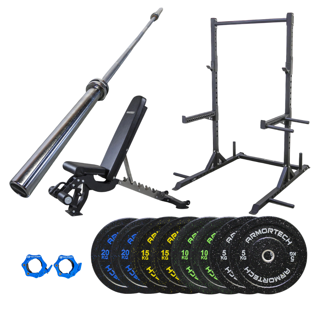 ARMORTECH CRUMB BUMPER PLATE BUNDLE Crafted to endure rigorous functional training whether in personal studios or commercial gyms. Engineered with a durable, grippy texture, these elite plates enhance your lifting experience with exceptional reliability and resilience to high impact. They feature an appealing flecked color design and are made from virgin rubber, which improves shock absorption, reduces pressure and bounce upon impact, to ensure safety during intense workouts. These plates not only facilitate easy weight identification but also add a stylish element to any gym environment.