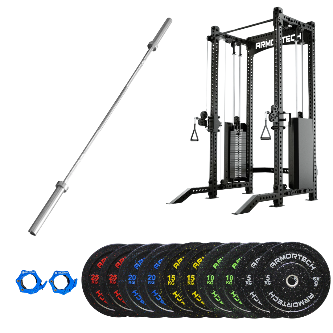 ARMORTECH CRUMB BUMPER PLATE BUNDLE Crafted to endure rigorous functional training whether in personal studios or commercial gyms. Engineered with a durable, grippy texture, these elite plates enhance your lifting experience with exceptional reliability and resilience to high impact. They feature an appealing flecked color design and are made from virgin rubber, which improves shock absorption, reduces pressure and bounce upon impact, to ensure safety during intense workouts. These plates not only facilitate easy weight identification but also add a stylish element to any gym environment.